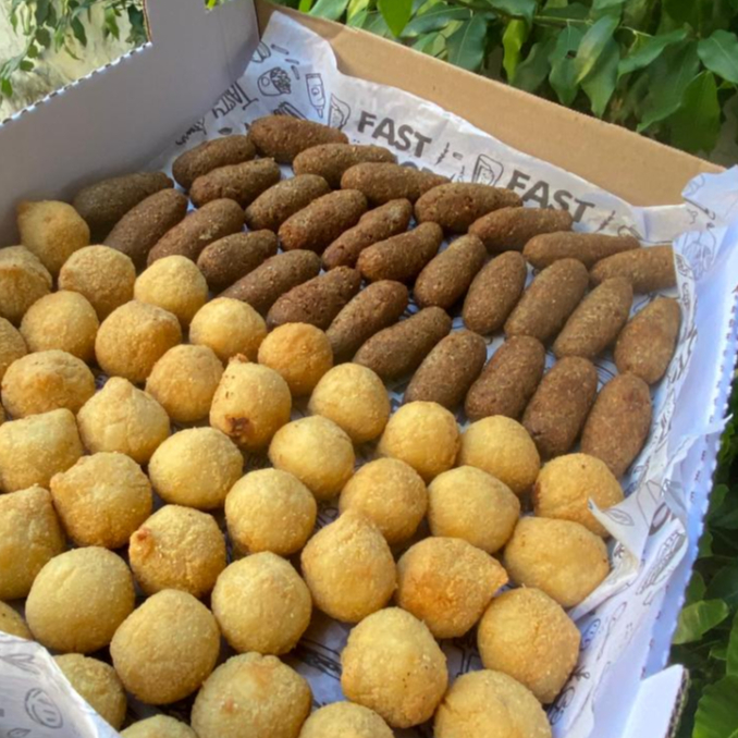 50 Salgados Especiais Com 3 Sabores: Bolinha De Calabresa Pastel De Carne Coxinha Cream Cheese