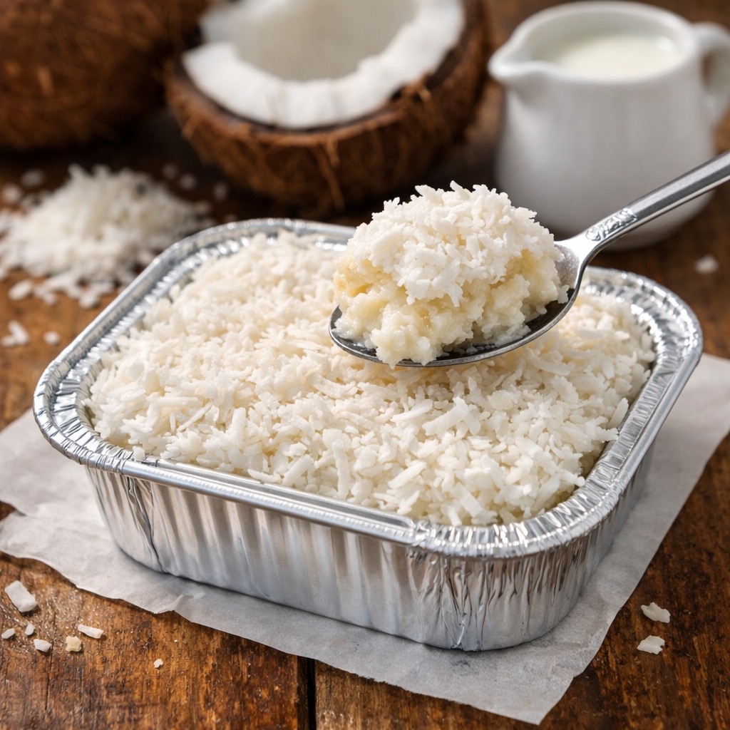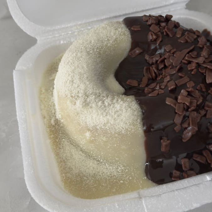 O sabor clássico que todo mundo ama! Massa branca macia e bem molhadinha, preparada com leite de coco e coberta com uma deliciosa camada de flocos de coco ralado, que trazem ainda mais sabor e textura. Servido bem geladinho, é perfeito para quem ama um doce leve, cremoso e cheio de sabor.