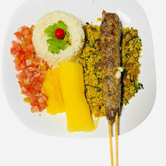 Kafta artesanal recheada com queijo derretido e grelhada até ficar suculenta. Sabor que conquista! Acompanha uma porção generosa de arroz, feijão tropeiro que é uma verdadeira explosão de sabores, mandioca cuidadosamente cozida até atingir a textura perfeita e um vinagrete refrescante, realçado pelo sabor ácido e equilibrado. Vai em embalagem selada.
