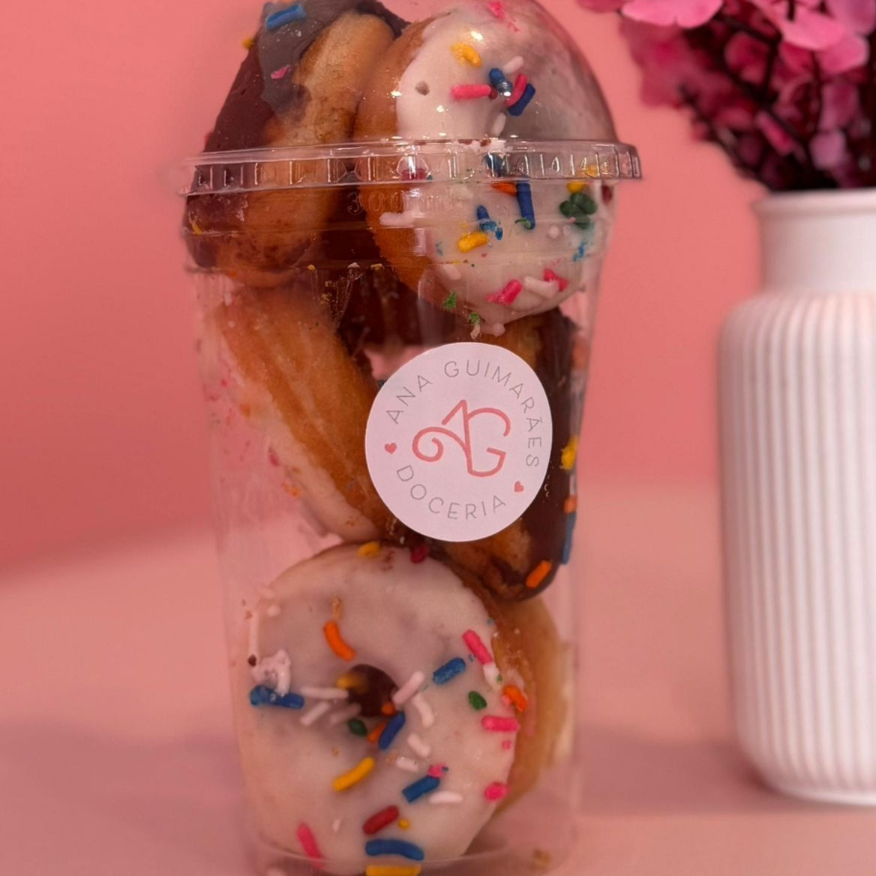 Copo Mini donuts assados, sabores ninho e nutella