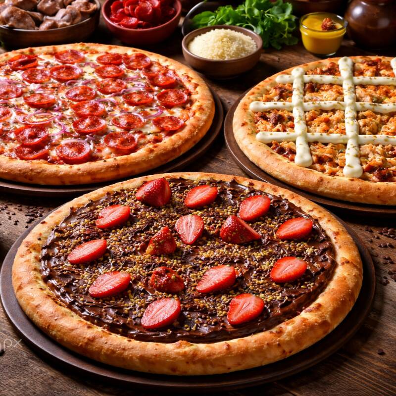 1 Calabresa 1 Chocolate Morango Grande 8 Pedaços