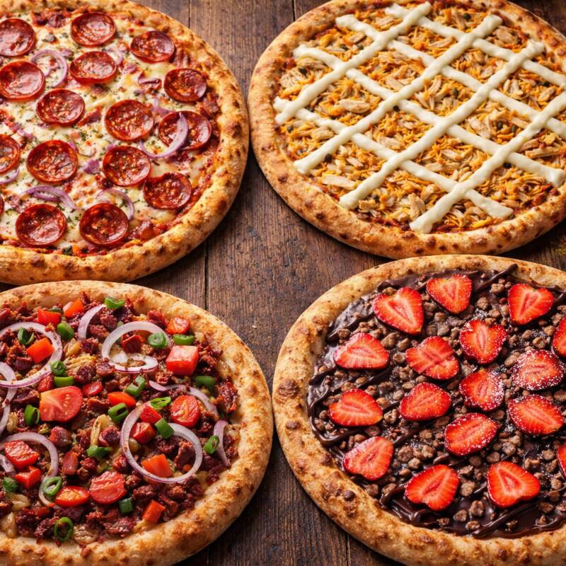 4 Pizzas 1 Calabresa 1 Frango Catupiry 1 Carne Seca 1 Chocolate Morango