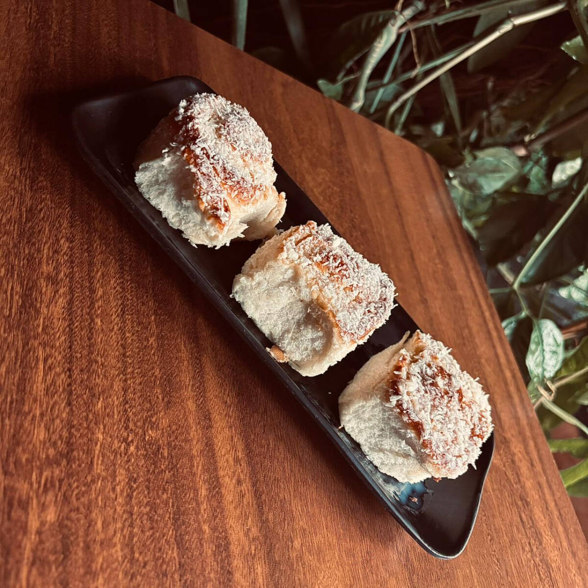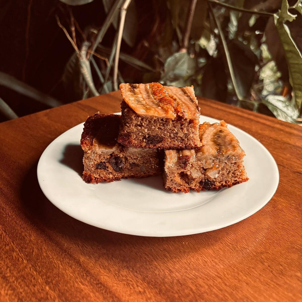 Massa macia e úmida, feita com banana madura, combinada com uvas passas que trazem um toque adocicado e textura a cada pedaço. Sabor caseiro e bem equilibrado.