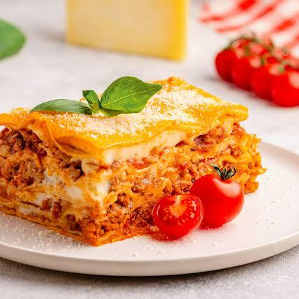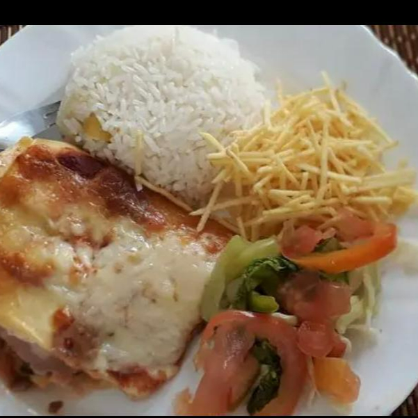 composta por: carne moída, presunto ,mussarela ,molho vermelho e molho bechamel