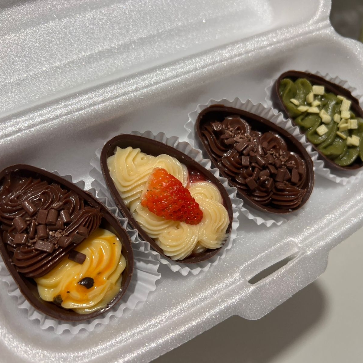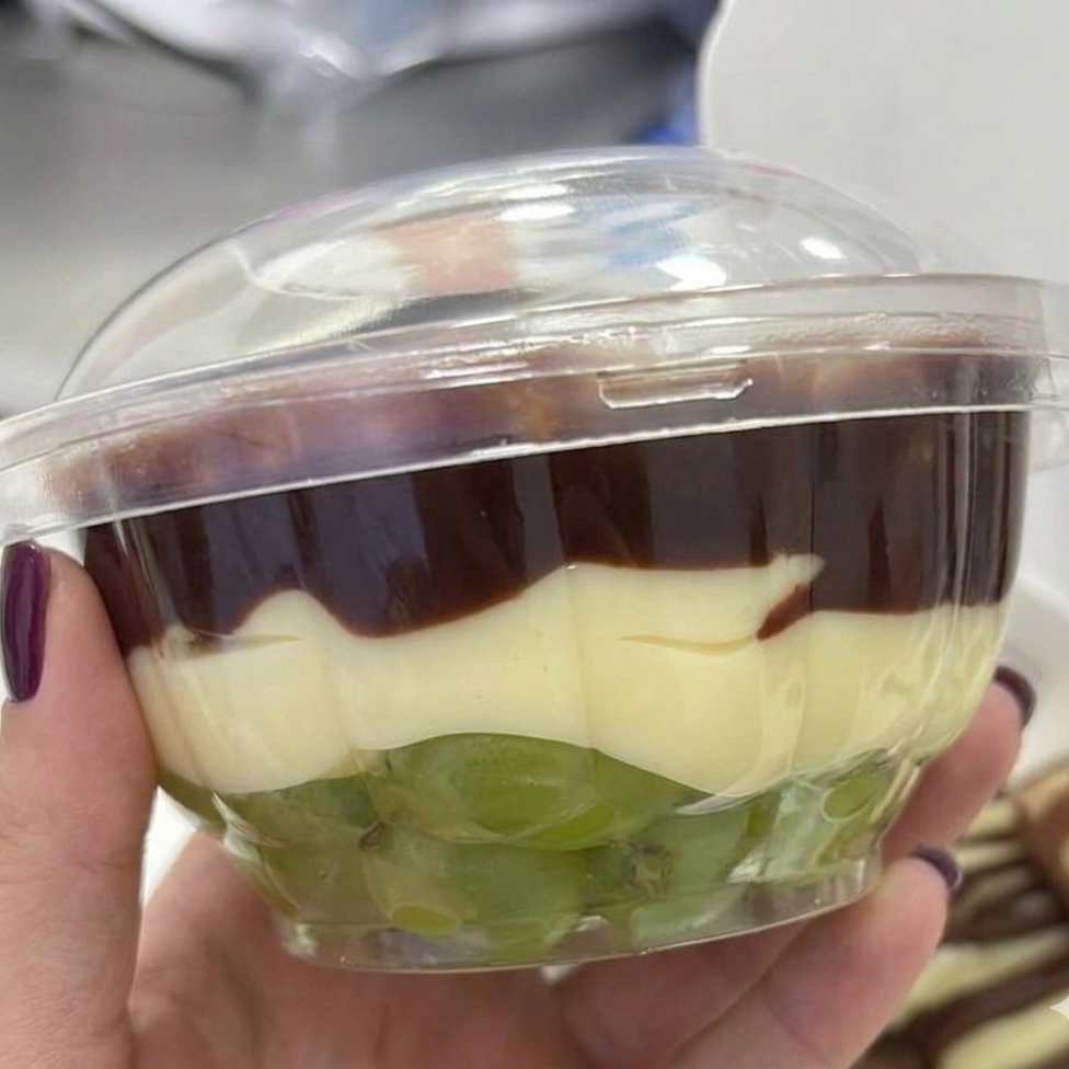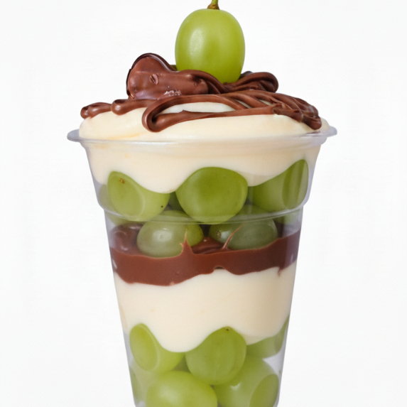 uvas verdes sem sementes, brigadeiro branco de ninho, e uma fina camada de chocolate