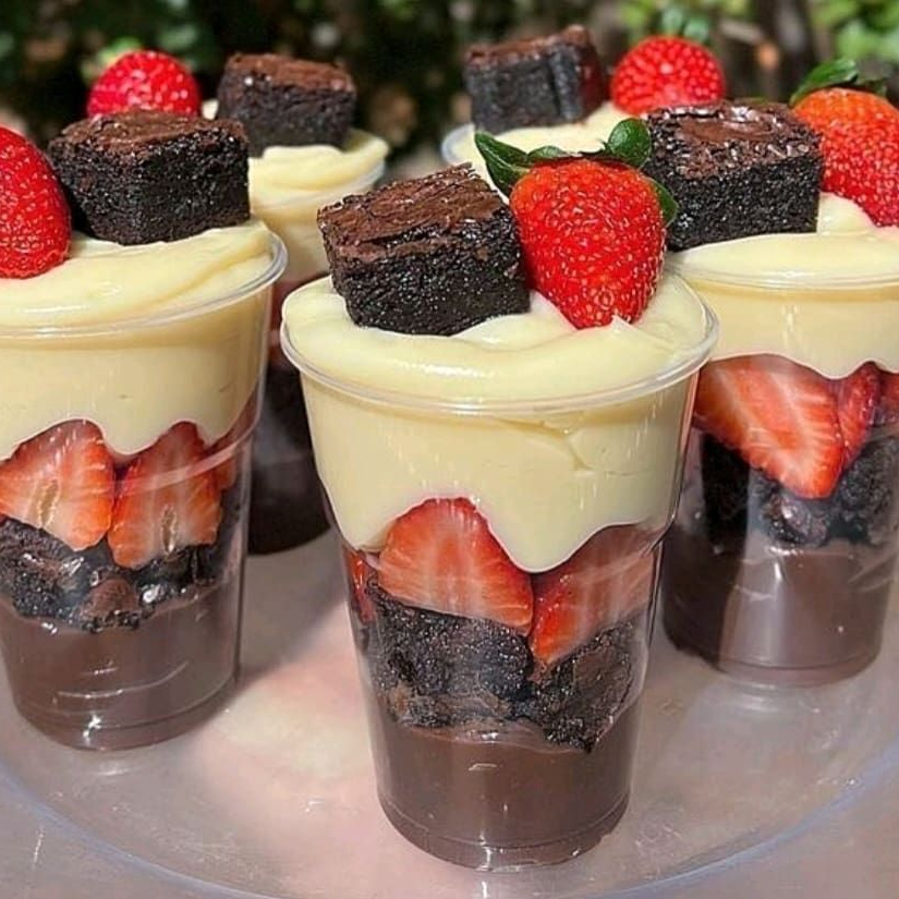 Copo 150ml. Brigadeiro tradicional, Brownie, Morangos, Brigadeiro branco.