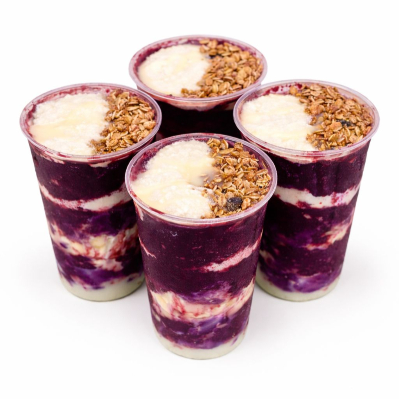 4 Copos de açai de 500mL com Leite condensado, Leite em pó e Granola