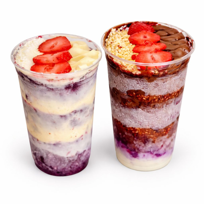 2 Copos de açai de 500mL com Leite condensado, Leite em pó e Granola