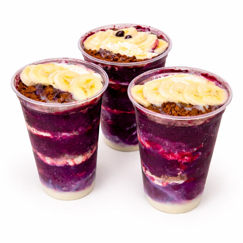 3 Copos de açai de 500mL com Leite condensado, Leite em pó e Granola