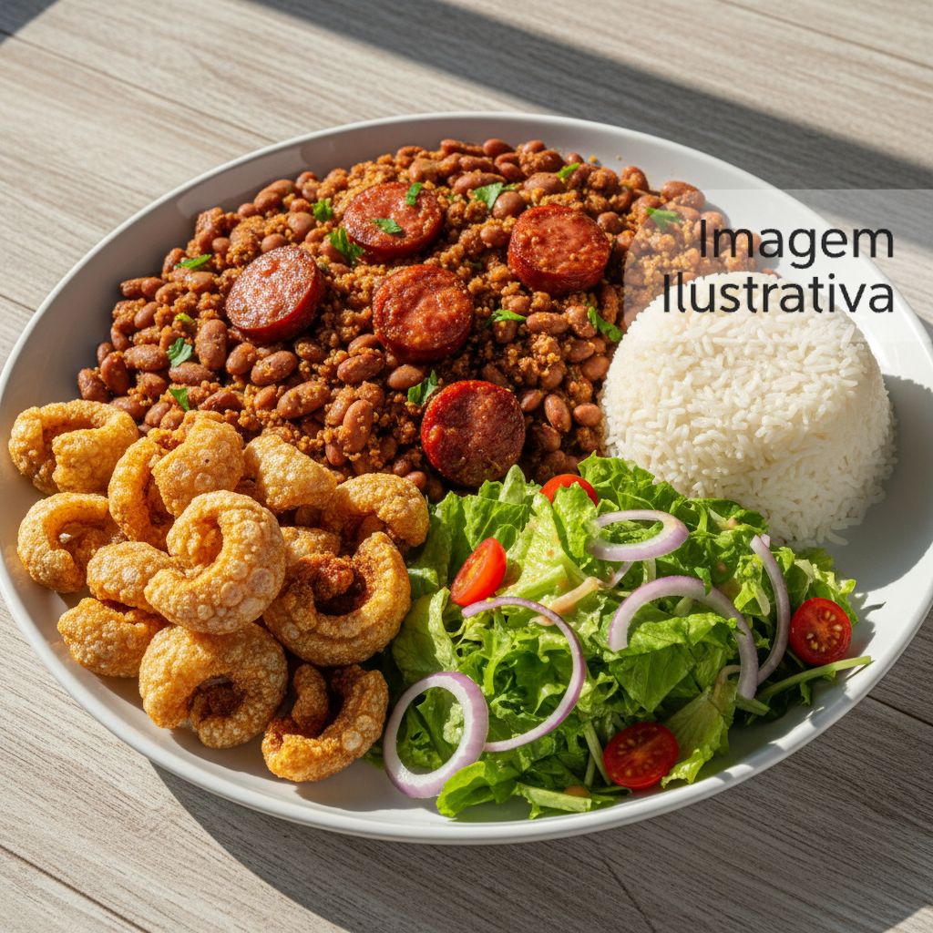feijao tropeiro servida com arroz branco, couve. sao 500 gramas de feijao tropeiro 400 gramas de arroz 200 gramas de couve
