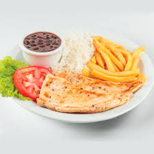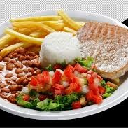 Marmita de peito de frango grelhado, servido com arroz, feijão, macarrão batata frita e uma deliciosa salada.