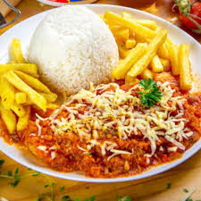 Marmita de frango a milanesa, acompanhado de arroz feijão macarrão, batata frita e salada. uma opção clássica que nunca sai de moda!
