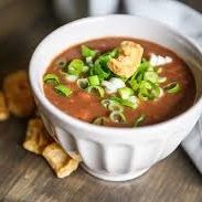 Caldo de feijão, preparado com temperos caseiros e servido com torresmo e cebolinha. Uma opção reconfortante para os dias frios!