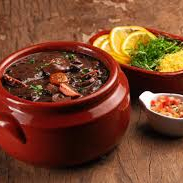 Feijoada servida com arroz branco, couve e laranja. são 500gramas de feijoada 400 gramas de arroz 200 gramas de couve.