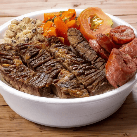 Churrasco com Até 2 Carnes à Escolha, Arroz Soltinho, Feijão de Caldo ou Tropeiro, Macarrão do Dia e Salada Fresca: Marmita Completa Acompanhada de Coca-Cola Original 350ml Bem Gelada.