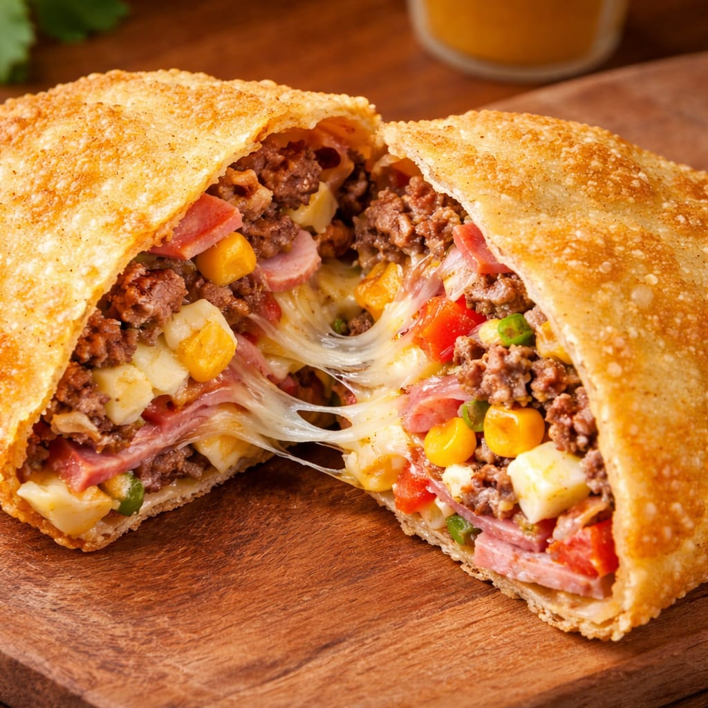 Pastel De Carne, Cheddar, E Queijo