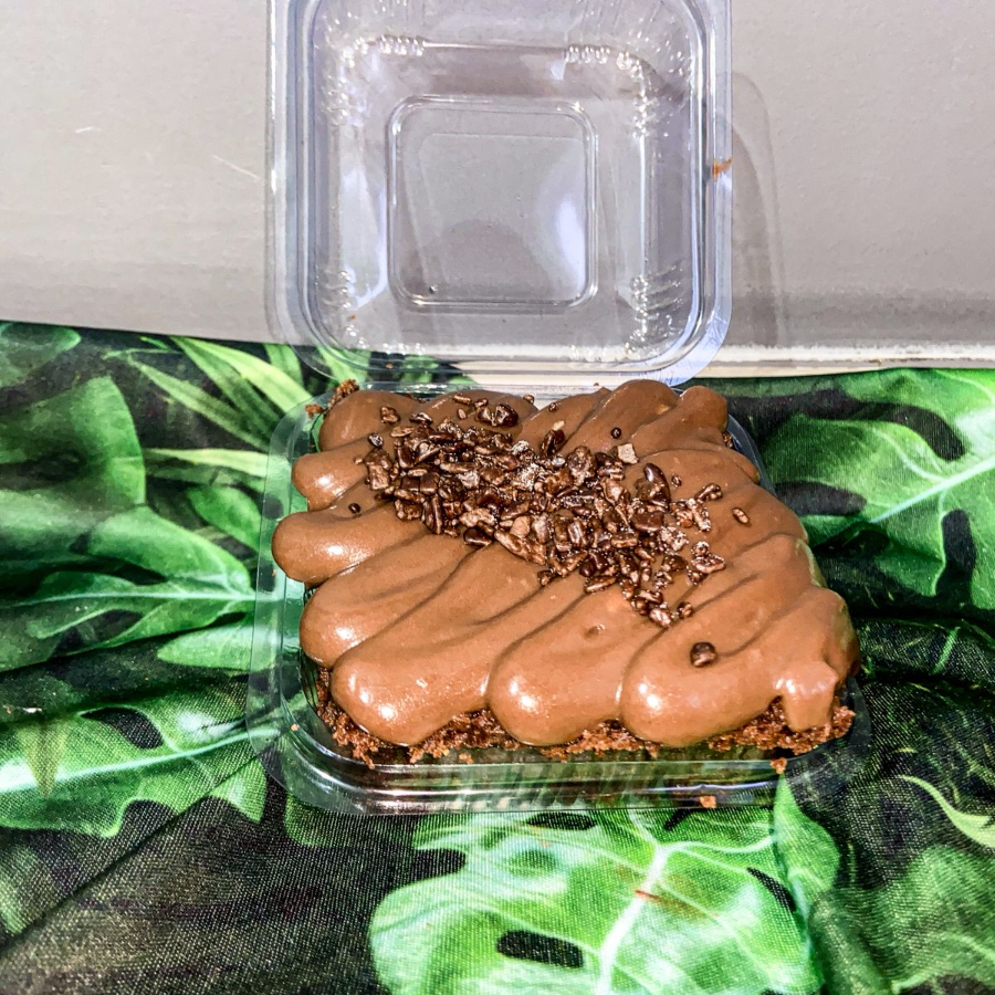 Massa de chocolate com cobertura de chocolate.