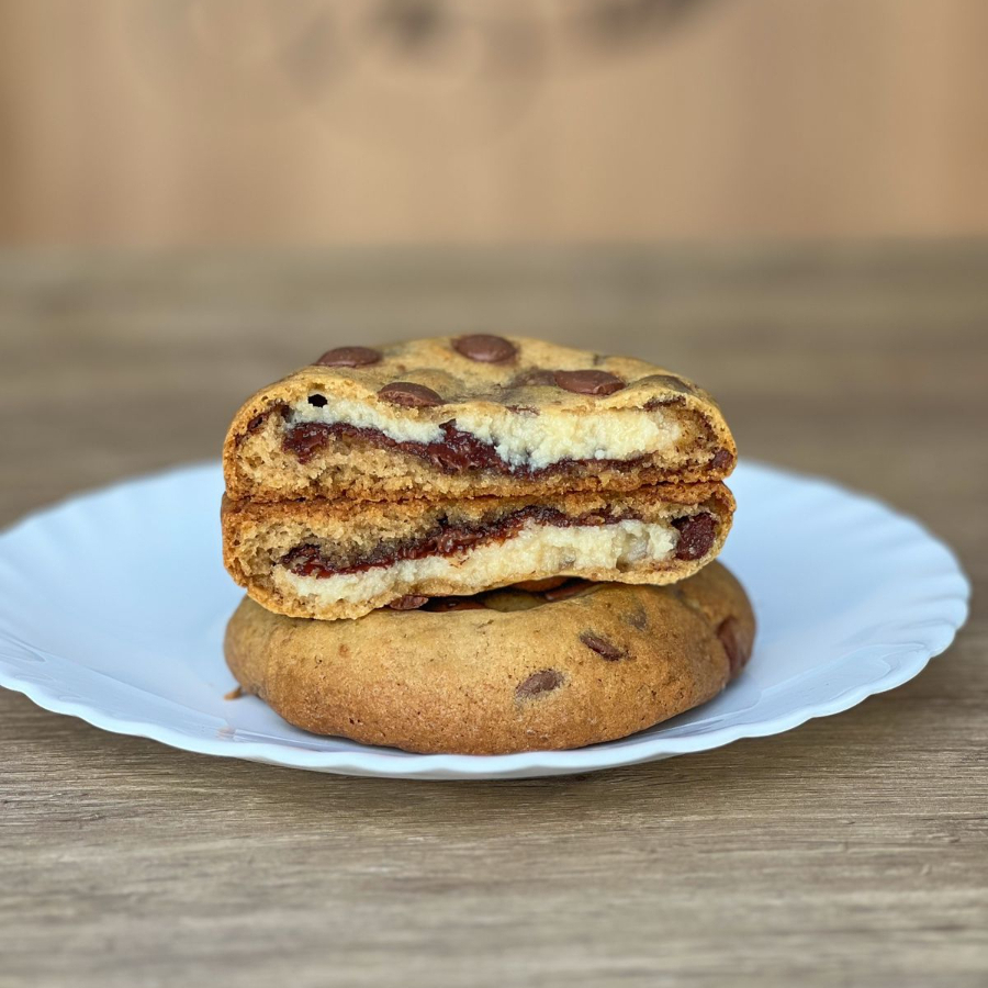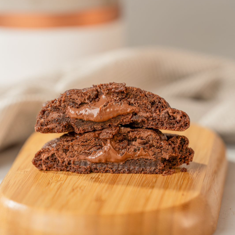 Nosso cookie perfeito de chocolate recheado com nutella pura.