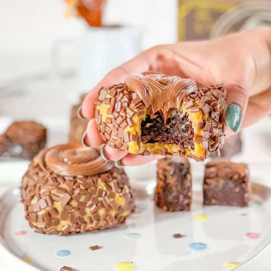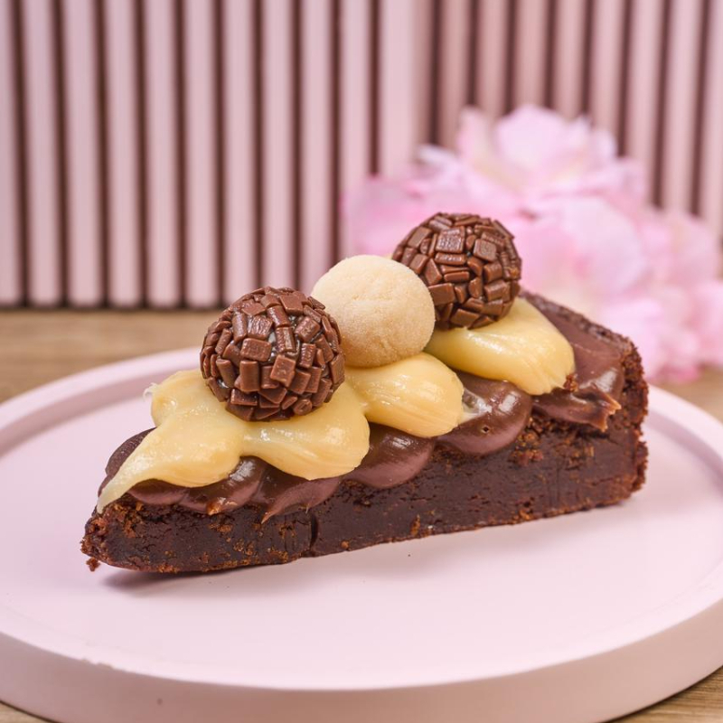 Brownie envolvido no brigadeiro e finalizado com nutella.