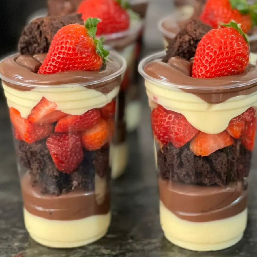 Copo Da Felicidade De Brownie Com Morangos