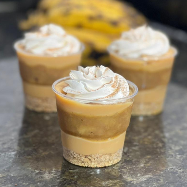 Um docinha para você se apaixonar, feito com banana caramelizada com canela, doce de leite, biscoito amanteigado e chantilly. Perfeito. 150ml