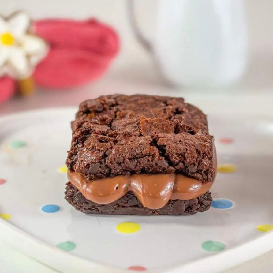 Nosso brownie perfeito recheado com ninho e nutella