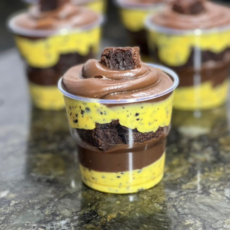 Brigadeiro de maracujá artesanal, brownie e brigadeiro belga ao leite. 150ml