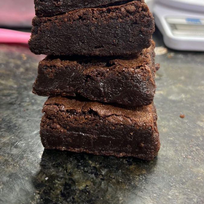 Nosso brownie perfeito, brigadeiro belga ao leite bem cremoso. Muito perfeito..