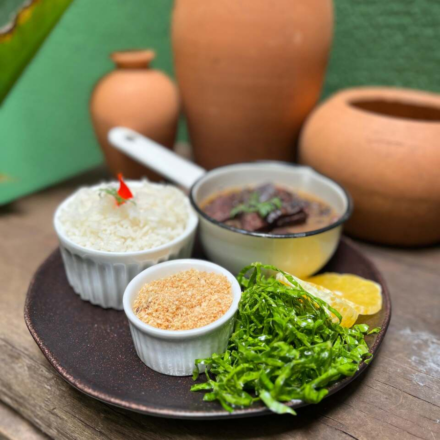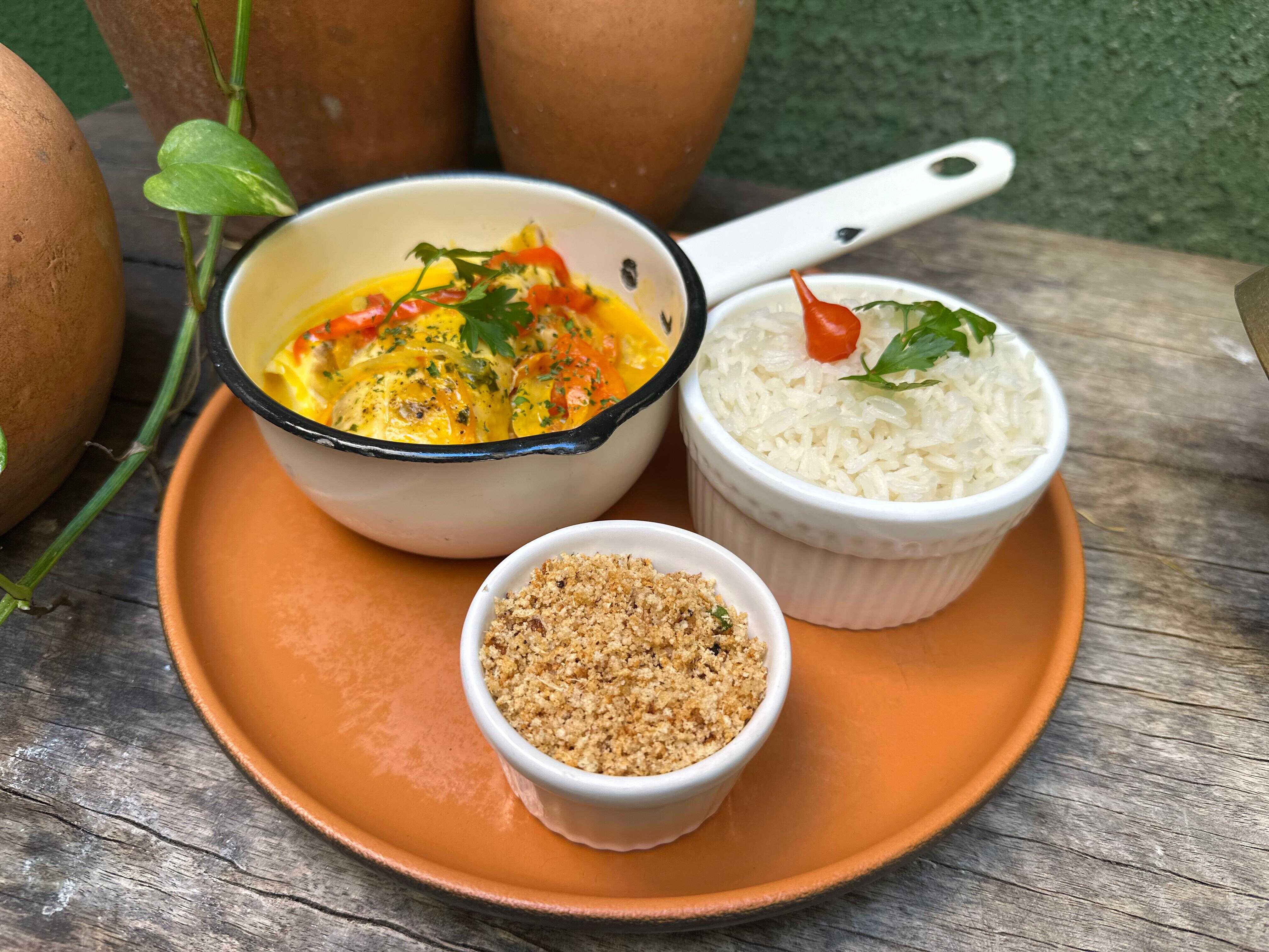 Quem disse que goiano não sabe preparar um Bobó de camarão? O nosso é simplesmente irresistível! Feito com um purê cremoso de mandioca, leite de coco, tomates, dendê, pimentão vermelho, coentro e um tempero especial que é a nossa assinatura. E, claro, com camarões limpos para dar aquele sabor único! Acompanha arroz branco ou integral e nossa deliciosa farofa da casa.
