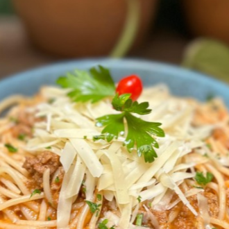 Que tal aquele macarrão despretensioso, mas cheio de sabor que te leva pra casa da Vovó, receita nossa com molho de tomates frescos e carne moída finalizados com parmesão e salsinha.