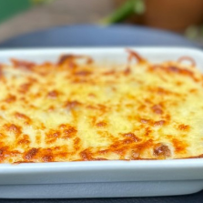Purê de batata doce delicadamente batido com um pouco de requeijão, manteiga, cebola e orégano e recheado com frango desfiado ao molho vermelho. Nossa, dá até vontade de ser fitness!rs