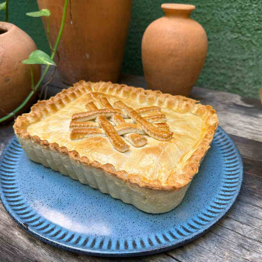 Apresentamos a nossa Torta de Frango, uma iguaria da categoria de Tortas Salgadas. Esta delícia é caracterizada pela sua incrível combinação de sabores. Cada pedaço é recheado com um suave e saboroso frango, envolto em um molho de tomates frescos cuidadosamente selecionados. Para complementar, adicionamos um toque de molho branco e queijo mussarela.