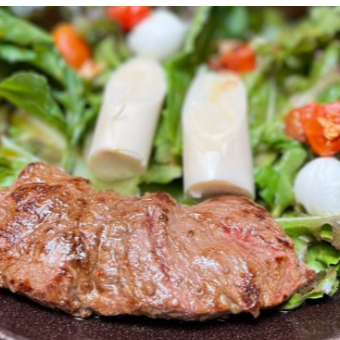 Mix de folhas, filé, muçarela de búfala, palmito, confit de tomate e molho pesto.