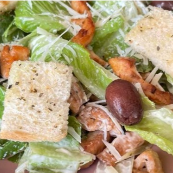 Alface romana bem crocante, lascas de filé de peito de frango, molho Caesar da casa, azeitonas pretas, parmesão e finalizada com croutons. Muuuito refrescante e uma delícia! Obs.: Salada fria.
