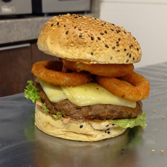 Pão de brioche, hambúrguer 180 Gr, Cebola empanada , queijo cheedar, alface e molho especial.