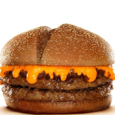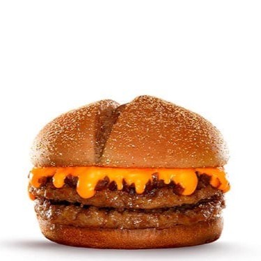 Clássico que todo mundo gosta: dois hambúrgueres bovinos com queijo num pão quentinho.