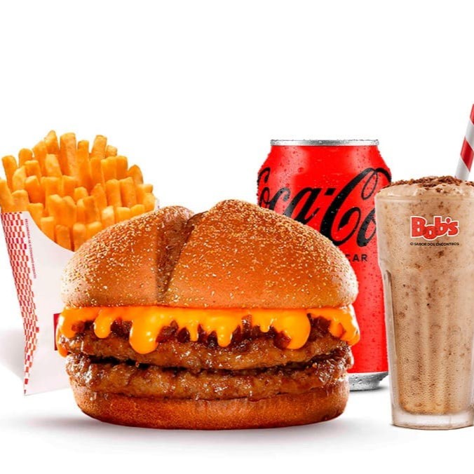 O grande clássico que só tem no Bob's. São dois hambúrgueres bovinos, queijo, alface e cebola fresquinhos e molho Big Bob Original, num pão quentinho com gergelim.