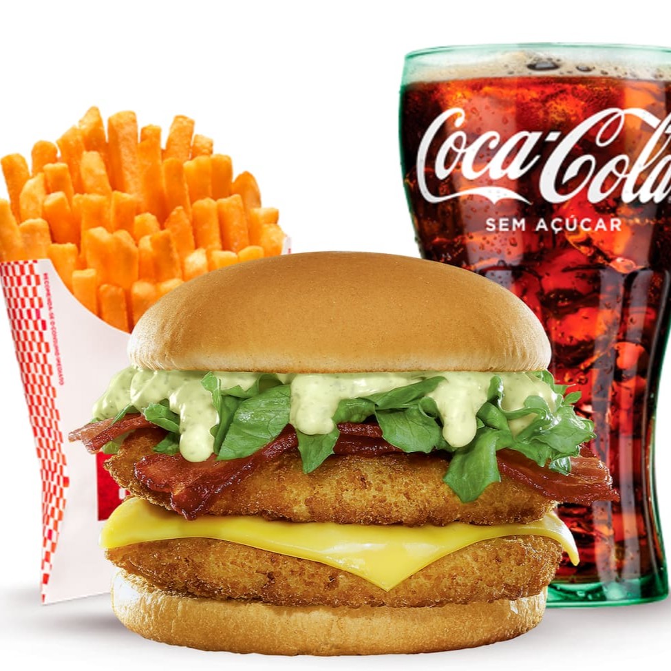 Feito com dois empanados de frango super crocantes, queijo e bacon, acompanhados da nossa deliciosa maionese verde, no pão macio. Tudo isso acompanhado de refrigerante e batata quentinha.
