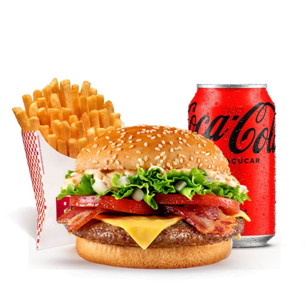 Este sanduíche de responsa foi desenvolvido para os amantes de Bacon. A deliciosa maionese sabor bacon, alface, tomate e cebola fresquinhos mais tiras de bacon crocante combinados com hambúrguer bovino e pão com gergelim, acompanhado com uma batata palito média e uma bebida bem refrescante.