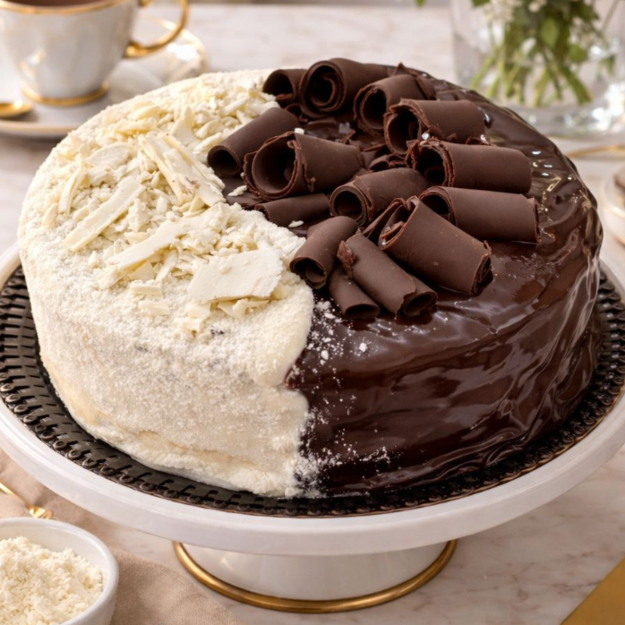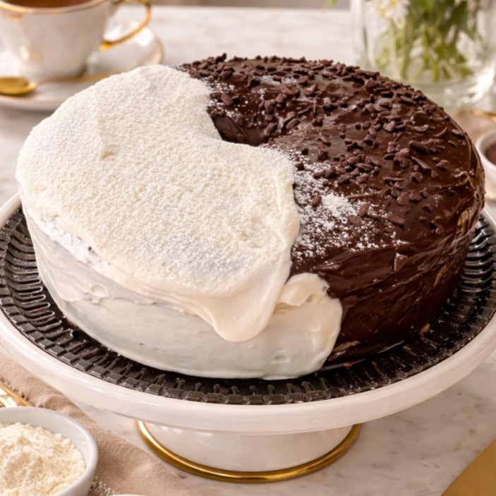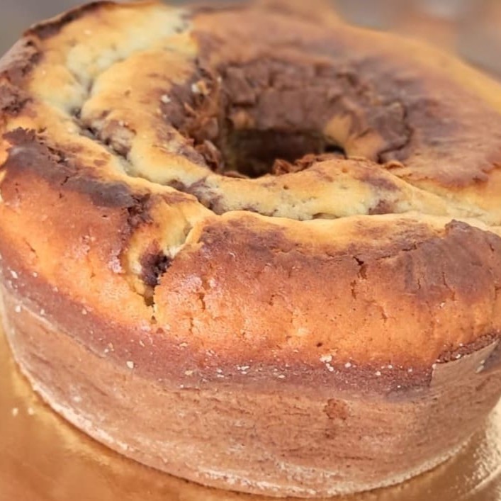 Dois sabores em um só bolo! Baunilha e chocolate se misturam em uma explosão de sabor. #Bolocaseiro #Bolomesclado #Chocolate serve de 10 a 12 fatias