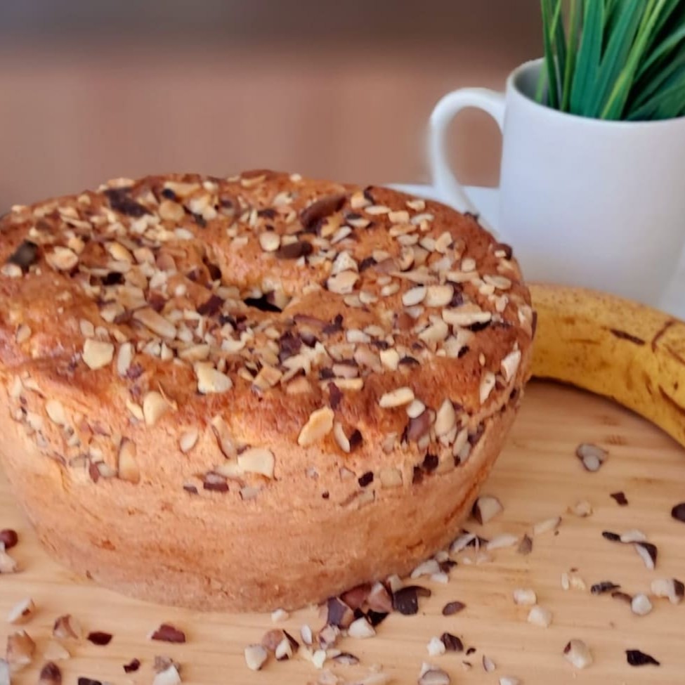 O sabor da banana madura com a crocância da castanha deixa esse bolo simplesmente incrível! Serve 10 a 12 Fatias #Bolocaseiro #Bolodebanana #Castanhas