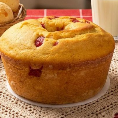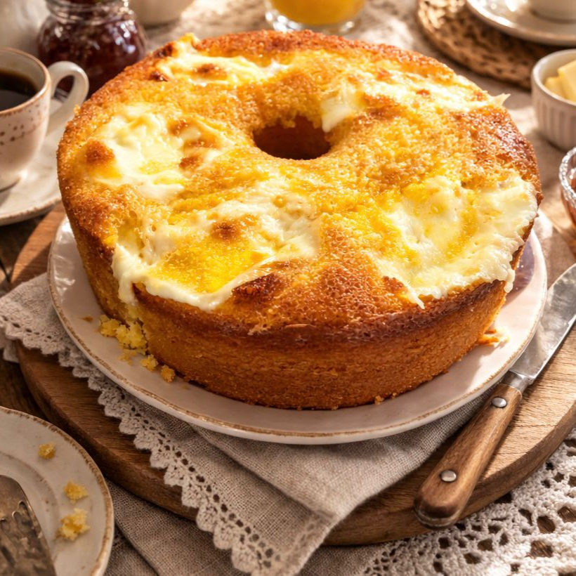 Um clássico irresistível! Feito com milho fresquinho e um toque especial de requeijão cremoso, macio por dentro e sabor marcante. #Bolocaseiro #Bolodemilho #Requeijao Serve 10 a 12 fatias