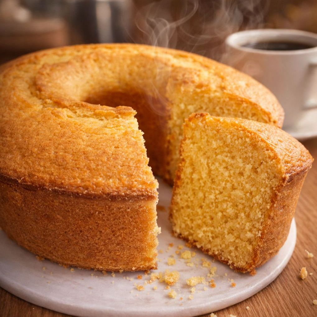 O clássico bolo de fubá com aquele sabor que remete ao café da tarde na casa da vovó. #Bolocaseiro #Bolodefuba #Tradicional Serve 10 A 12 Fatias