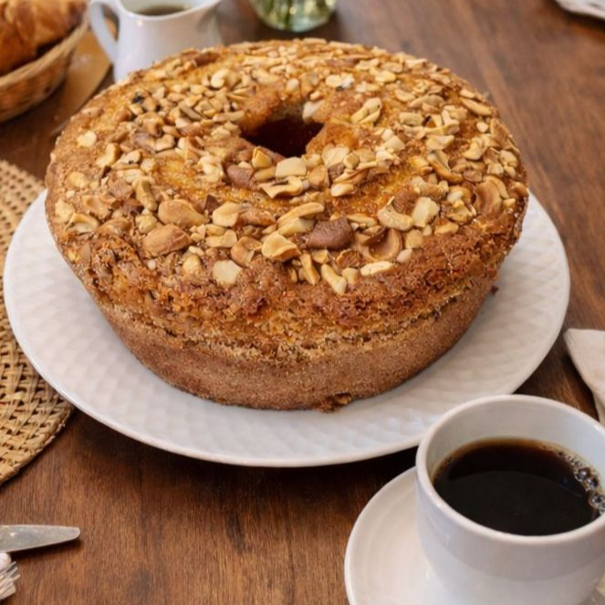 Sabor suave da maçã combinado com a crocância da castanha. Um bolo sofisticado e delicioso para acompanhar seu café! Serve 10 A 12 Fatias #Bolocaseiro #Bolodemaca #Castanhas