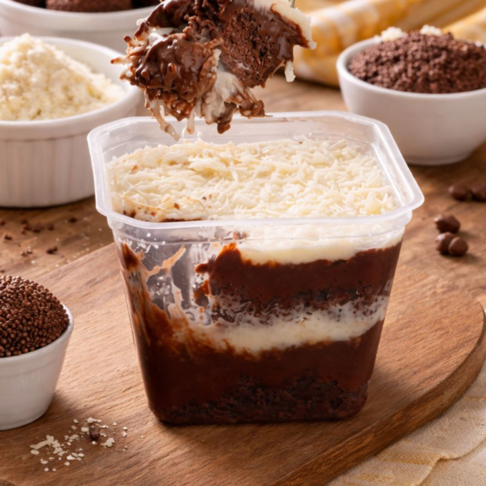 Nosso delicioso bolo no pote Prestígio Como nosso brigadeiro caseiro