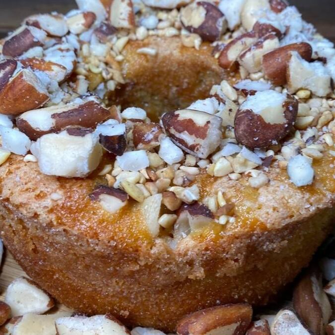 O autentico e delicioso bolo caseiro de maçã com castanhas! Perfeito para um lanche aconchegante. Sabor suave e textura incrível. Experimente essa maravilha! Apx .550g tamanho M
