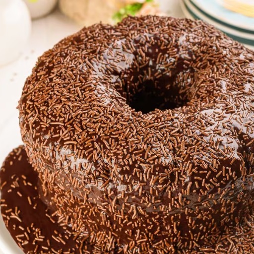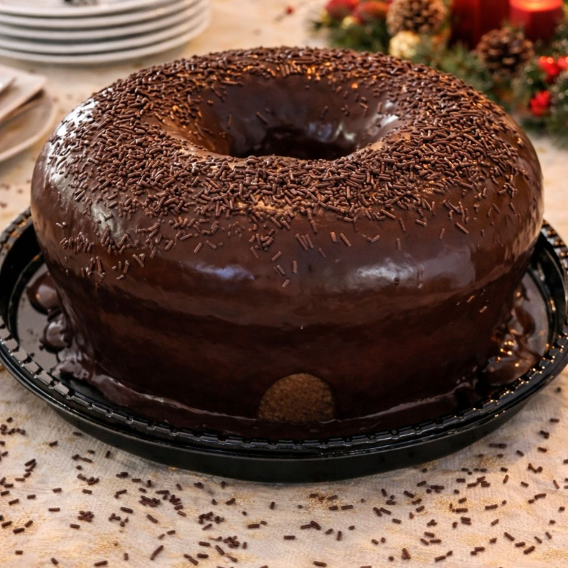 Bolo sabor chocolate e com a cobertura envolvendo todo bolo, pra quem ama mesmo o chocolate de verdade