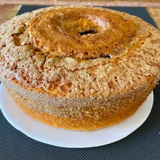 Bolo de trigo com coco ralado dentro do bolo e por fora do bolo, um sabor que lembra bolo de vó