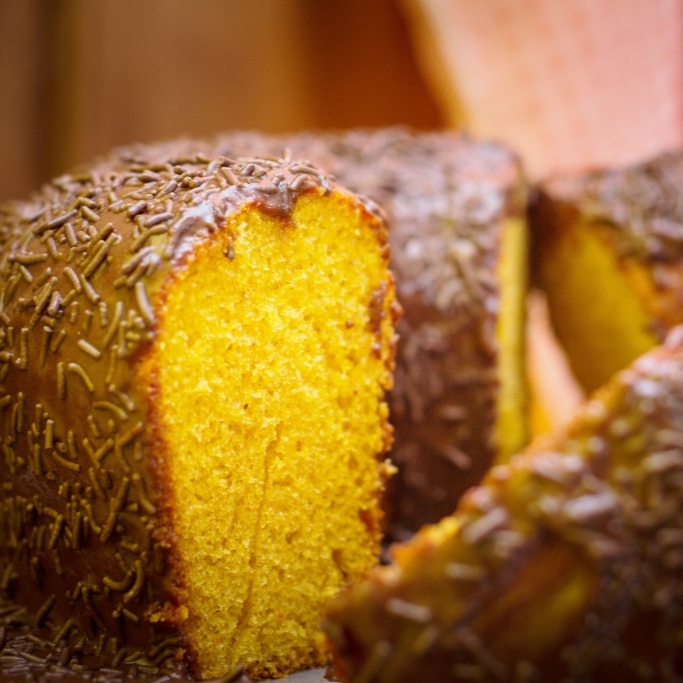 Delicioso bolo de cenoura, confeccionado com cenouras frescas, massa leve e fofinha. Um dos preferido dos clientes Bolos do Sítio.