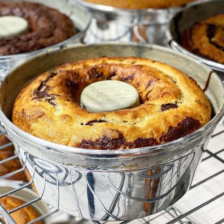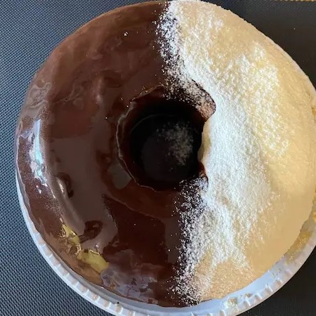 Dois sabores - massa branca e chocolate, conhecido tambem como bolo mármore. Bolo de 22cm.